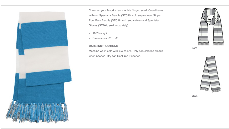 Cheer on your favorite team in this fringed scarf. Coordinates with our Spectator Beanie (STC20, sold separately), Stripe Pom Pom Beanie (STC28, sold separately) and Spectator Gloves (STA01, sold separately).
